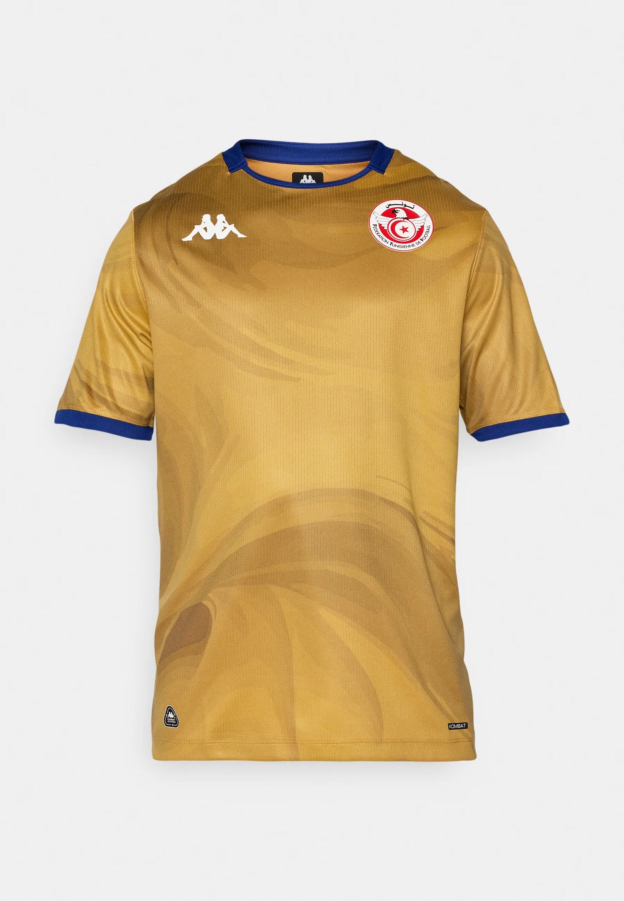 Stand out with the Tunisia Third Jersey 2025/26, designed in a striking gold finish with deep navy details. This jersey delivers a premium modern look while celebrating the bold spirit of the Eagles of Carthage. The swirling pattern across the front adds movement and texture, making it one of the most unique Tunisia kits of the season.